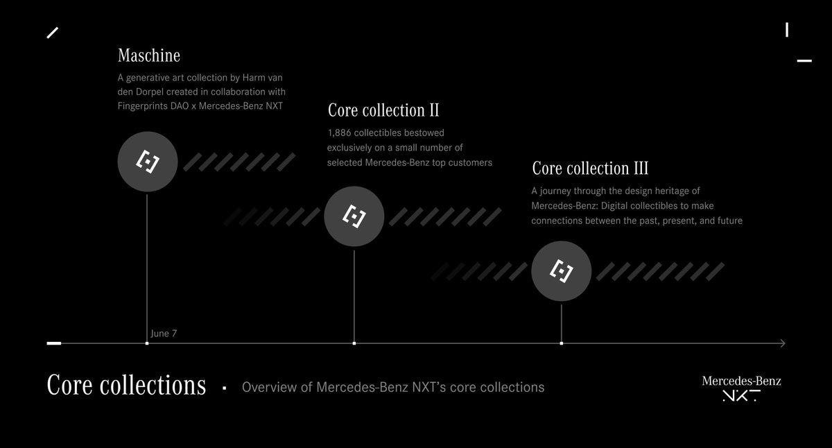 Mercedes-Benz has confirmed three more upcoming collections and launched a Twitter that will be the home of its web3 community (https://twitter.com/MercedesBenzNXT)